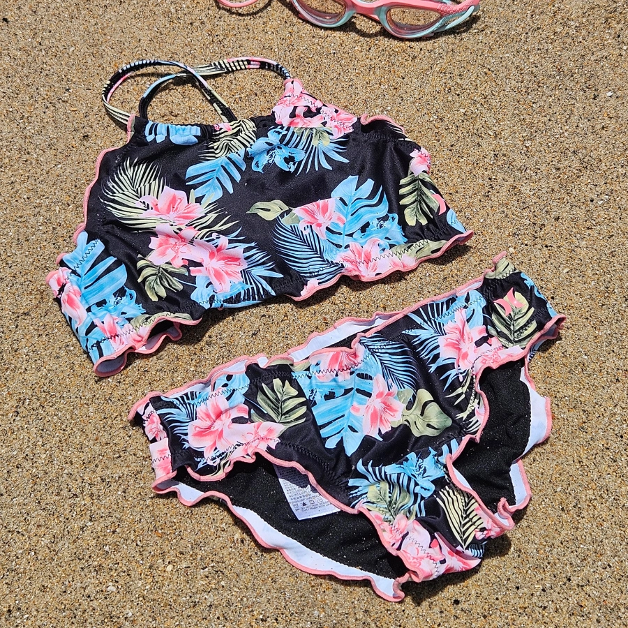 Maillot de bain 2 pièces noir fleuri