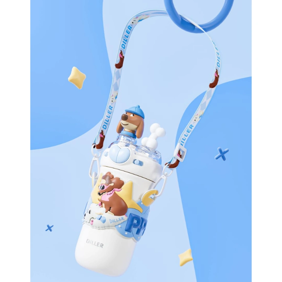 Gourde isotherme en acier inoxydable pour enfant sur le thème Puppy Love. De couleur blanche avec des illustrations mignonnes de chiens bruns, elle maintient les boissons au frais ou au chaud. Idéale pour l’école et les activités de plein air, elle est agrémentée d’un charme de chien amovible en relief.