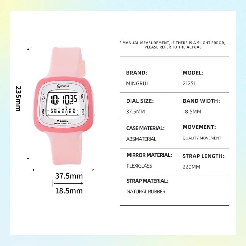 Découvre la montre Mingrui 2125L, l’accessoire parfait pour les petits explorateurs ! Avec ses couleurs fun et son design arrondi, elle apporte une touche de style à toutes tes tenues. Son écran magique affiche l’heure, la date et même les jours de la semaine de façon super claire, pour que tu deviennes un vrai pro du temps, que ce soit pour l’école ou pour jouer avec tes copains.