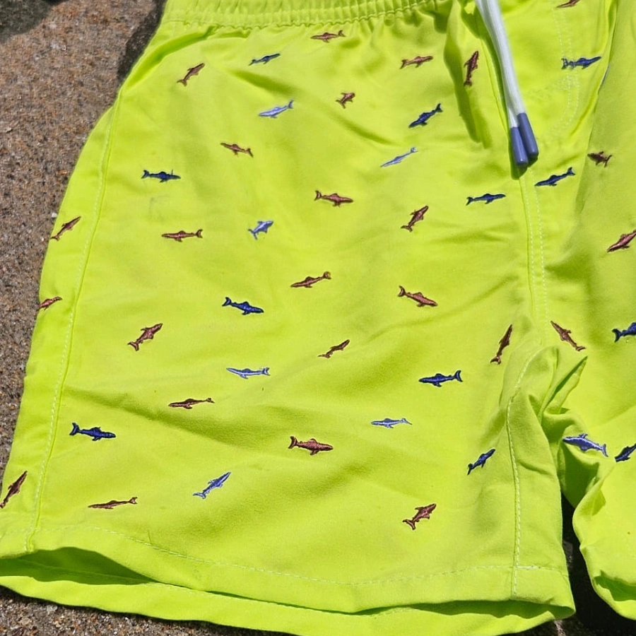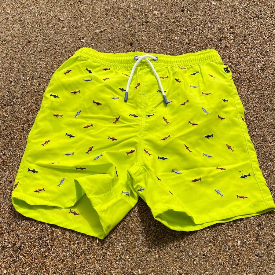 Ajoutez de la couleur et du fun aux journées plage de votre enfant avec ce short de bain jaune vif à motifs requins ! Conçu pour les enfants actifs de 3 à 10 ans, ce maillot de bain est à la fois tendance, confortable et rapide à sécher.