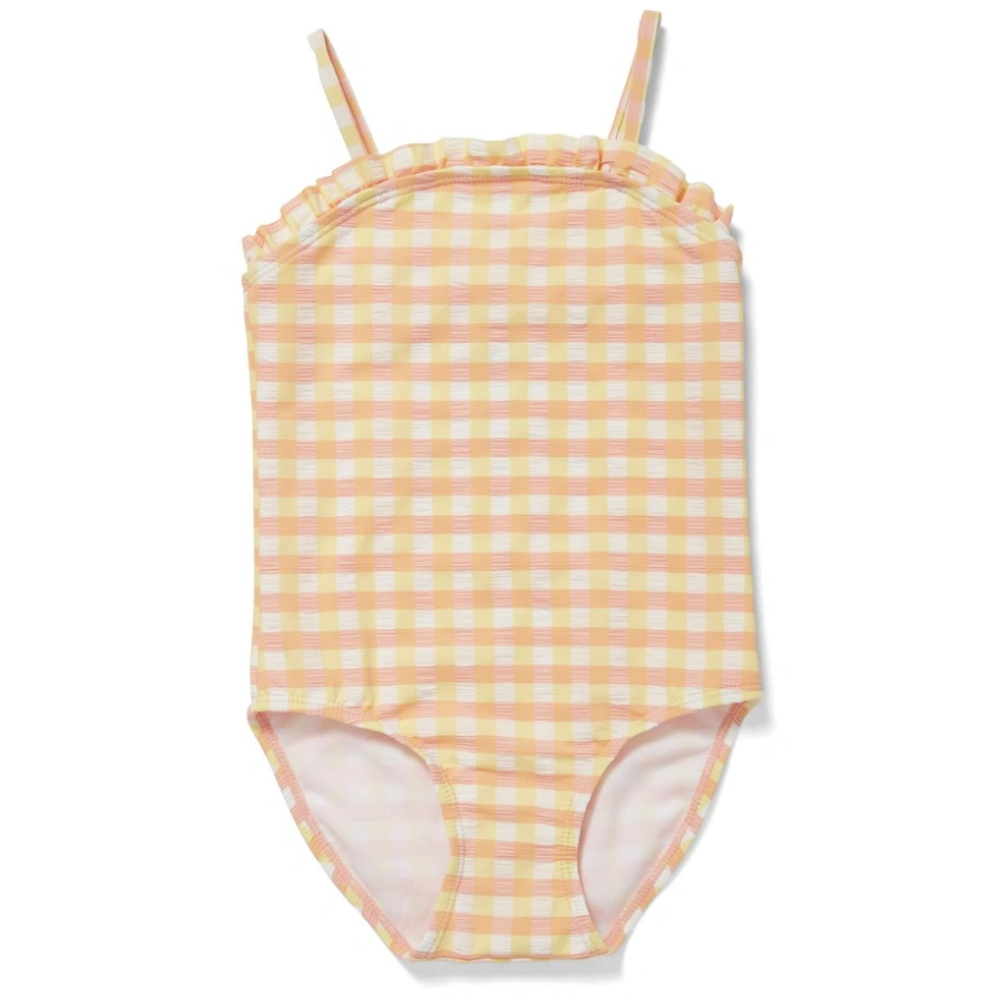 Conçu pour les filles dynamiques et élégantes, ce maillot est fabriqué dans un tissu extensible, doux et résistant, idéal pour les journées à la plage, les piscines ou les cours de natation. Son imprimé à carreaux discret et raffiné plaira autant aux parents qu’aux enfants.